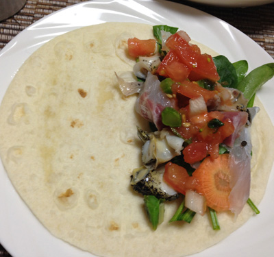 …でもトルティーヤとサルサで包むと、なんでもタコス味になってしまって
