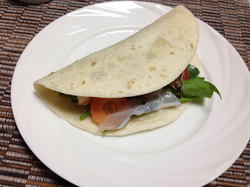 とはいえ、トルティーヤにサラダをはさむだけでは再現手順的に味気ないので
