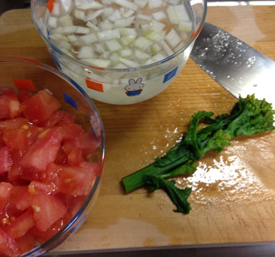 私は生玉ねぎがちょっと苦手なので、よく水にさらしておきました。