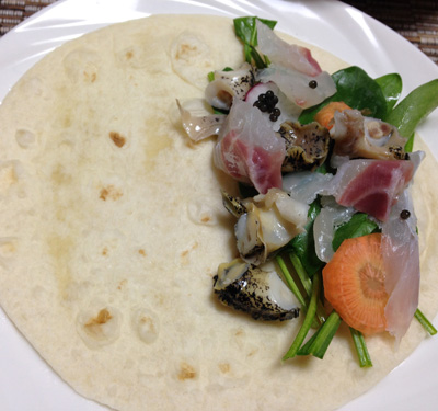 ・トルティーヤの半分に、タブナジア風サラダをのせます。
