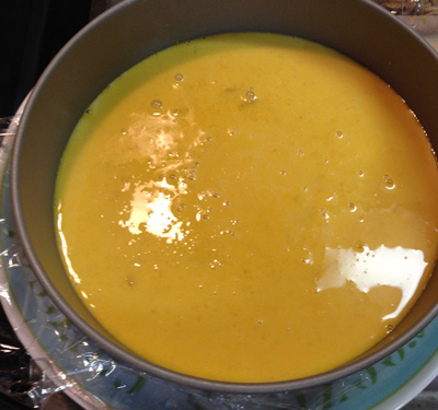 今回はケーキ用の底が抜ける型にラップで目張りをしたものを使いました。