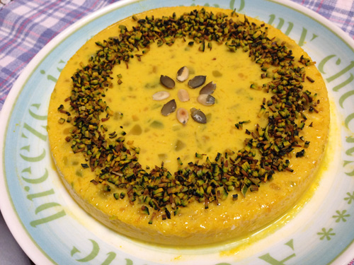 ・ババロアの表面にみじん切りのかぼちゃ・かぼちゃの種で飾りつけしたら完成です!
