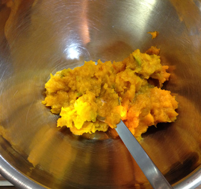 ・それをつぶしたかぼちゃに加えて、だまがなくなるまで混ぜ