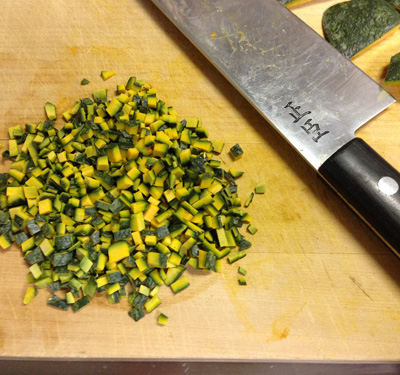 ・続いてかぼちゃの皮を1~2mm角のみじん切りにして