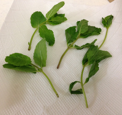 新しく買ってきたミントを洗って、キッチンペーパーで水気をとります。