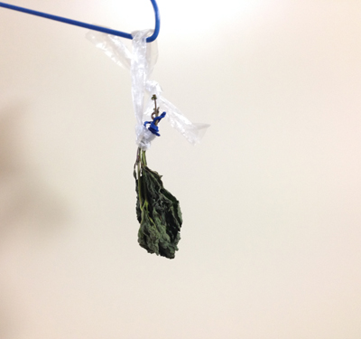 今回はエアコンの風が通るところに2日ほどつるしておきました。