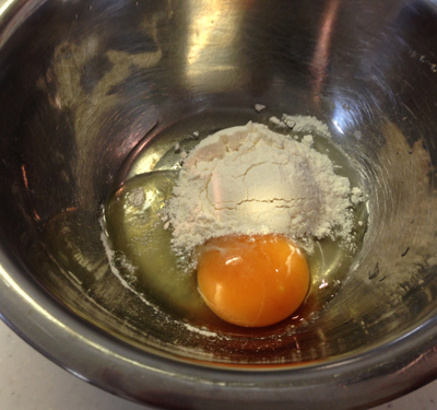 まずは卵と小麦粉をよく混ぜます。あまりスープの材料っぽくないなあ。