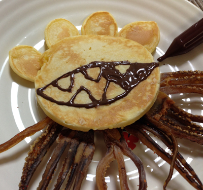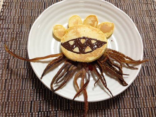 いやー、突貫で作った割にはまあまあ良くできましたよ、モルボルパンケーキ!頭の突起がモルボルっていうよりむしろサザエさん風なのは
