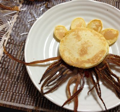 パンケーキにするめの七味がちょっと付着してしまって