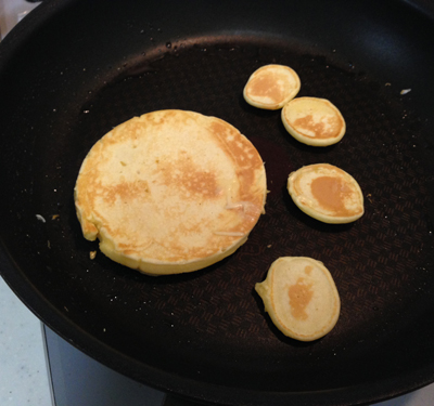 ついでにモルボルの頭の突起部分に相当する小さめのパンケーキを4つ焼きます。