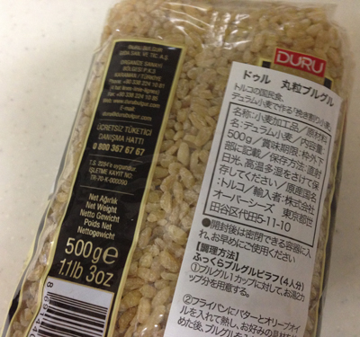 こちらはブルグルという、デュラムセモリナ粉でできた粒状の食品で