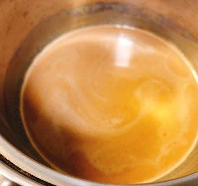 ・小鍋で牛乳を温め、インスタントコーヒーを溶かします。