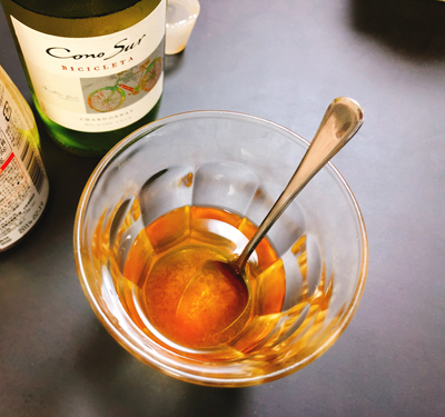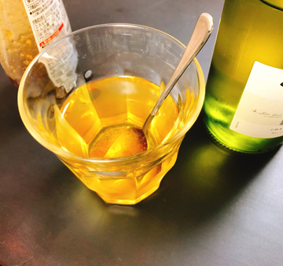 ワインと蜂蜜を混ぜた段階で、さっきとだいぶ色が違うのが分かります!