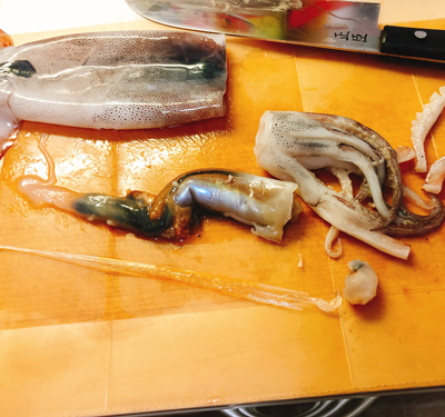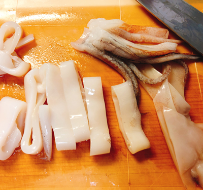・まずはイカの下ごしらえから。