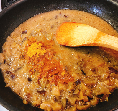 焼きナスをペースト状にしたものを加えて