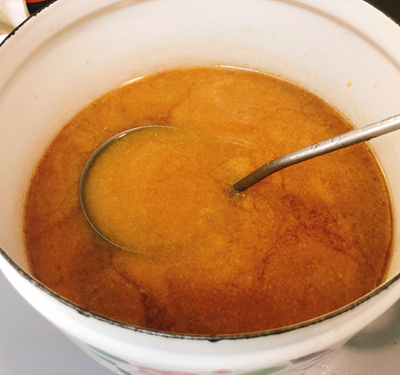 ※水は3~4リットルくらいから茹で始め、最終的に1.5リットル程度に煮詰めます。