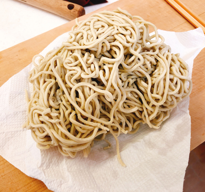 市販の麺より短めなせいで、箸ですくい上げにくいのですが