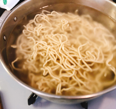 ・ぐらぐら沸騰させたお湯でラーメンの麺をゆでます。