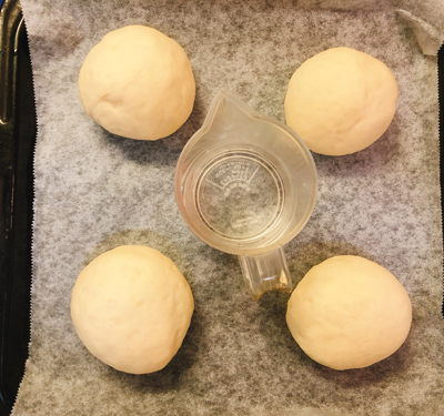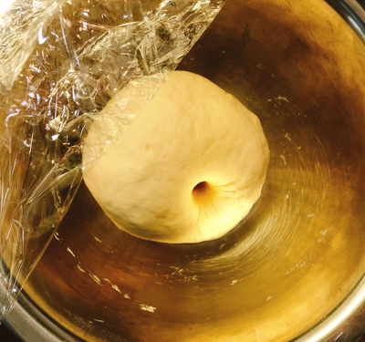 ・ボール状に生地をまとめて、ボウルに入れてラップで密閉し