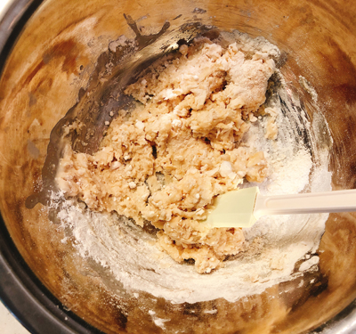 一通り混ざったら、分けておいた塩・バターの入った粉も投入。