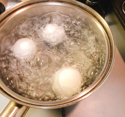 沸騰させたお湯にそっと投入し、8分半ゆでます。