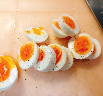 ・卵の殻をむいて輪切りにし、塩こしょうをふったら