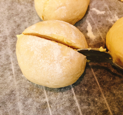 卵の大きさから推測できる通り、パン1個で直径6~7cm程度の大きさなんですが