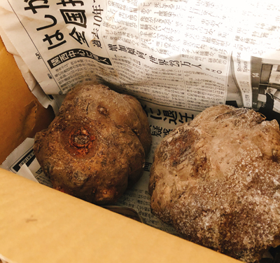赤ちゃんの頭ほどもありそうな立派な芋が届きましたよ。