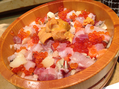 意気消沈しつつ、朝ごはんに場外で海鮮ひつまぶしを食べて撤退…