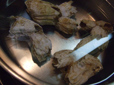 ・フジツボの表面をゴシゴシ洗って汚れを落とし、水からゆでます。