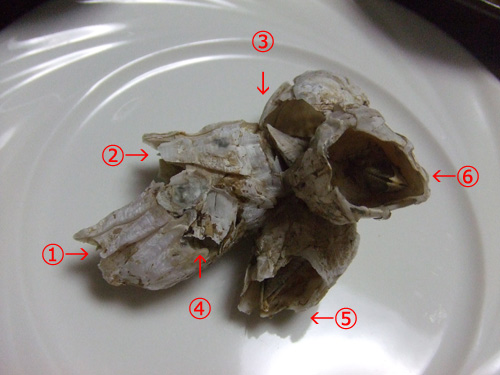 この写真のやつは、横方向の長さが10cmぐらいの殻の塊の中に