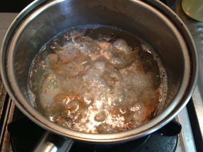 ・エビの殻は、香ばしさを出すために乾煎りした後