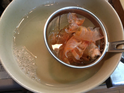 殻は出汁を取るのに使うので、捨てずにとっておきます。
