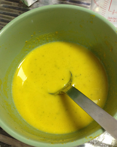 ・卵黄、先ほどのかぼちゃ+牛乳、砂糖を合わせて