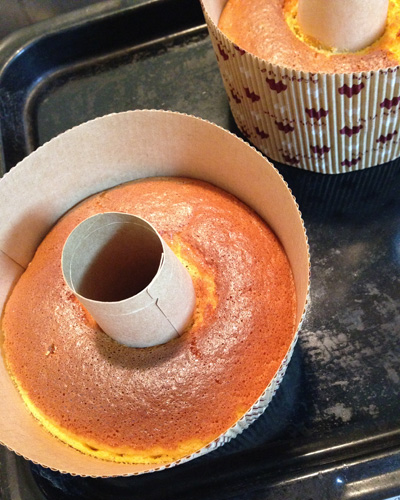 そのままだと、せっかくのシフォンがしぼんでしまうからですが