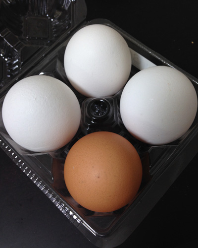 1個だけ赤玉のちょっといい卵を混ぜてみました。