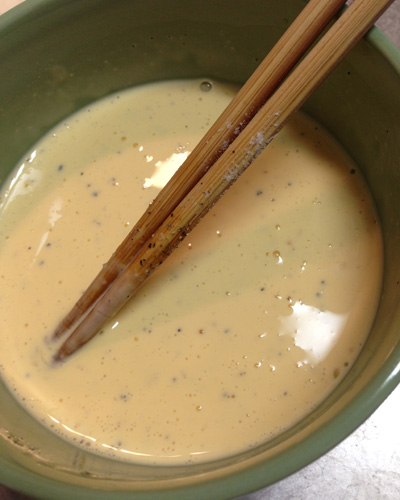 ・卵、生クリーム、塩、こしょうを合わせてよく混ぜ合わせます。