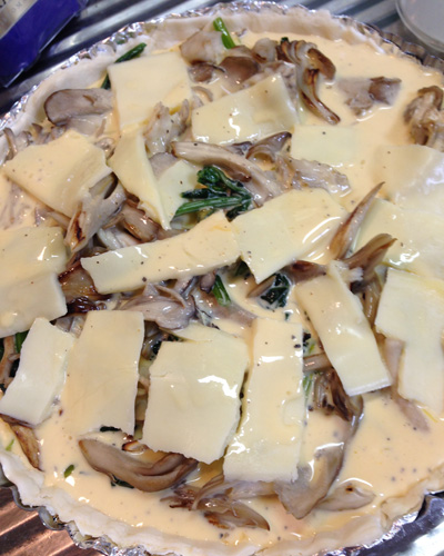 ・型に敷き詰めたパイ生地の上にほうれん草と舞茸を乗せ