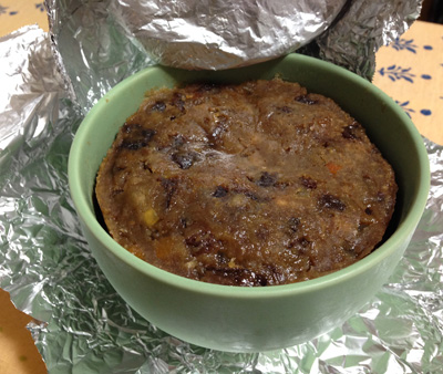 アルミホイルに包まれて3週間厳重保管されたプディングは