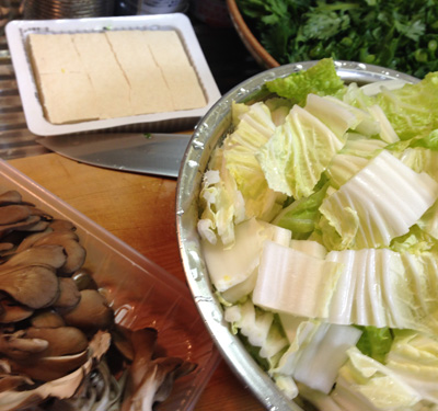 舞茸・木綿豆腐・白菜・春菊と、普通のすき焼きに近いラインナップになりました。
