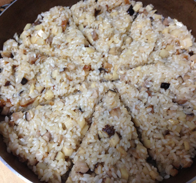 を加えて米に水分を吸わせます。