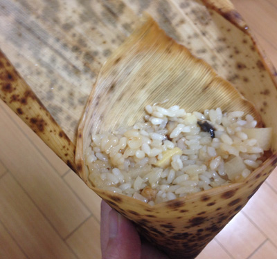 あつあつの粽を手にとって、慎重に竹の皮をはがしてみたところがこちら。