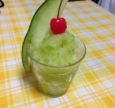 おでんのガルカさんのアイディアを拝借してメロン果汁も仕上げにかけたかったのですが、氷が柔らかすぎて断念しました( ̄ー ̄;)