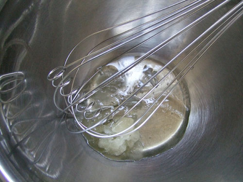 ・冷凍庫に15分ぐらい入れておいた卵白を、メレンゲにします。