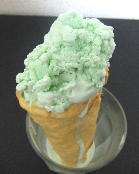 ・アイスが固まってきたら、コーンの上に盛り付けます。