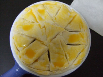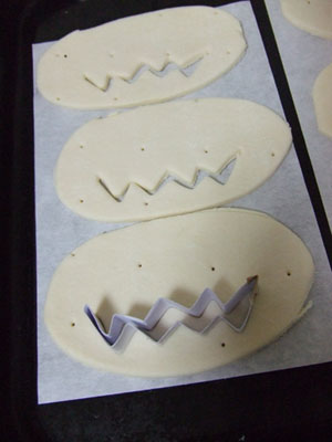 生地のふちを押さえて、最後につや出し用の卵黄を塗ります。