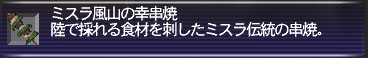 さて、記念すべき第1弾は ミスラ風山の幸串焼 にしました~。