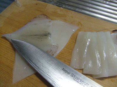 ゲソズシの材料に出てきたするめいかの、胴の部分を使います。