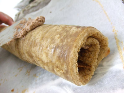 ・この謎のモロモロクリーム(泣)の半量をスポンジ生地の表面に塗って、くるくる巻いて