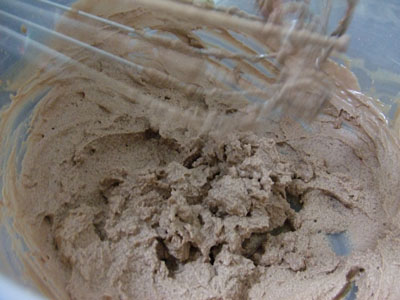 もしミキサーを購入されたならば、りぼん状になってからミキサーの回転を緩くして(大概のミキサーは回転の速さを調整できるので)さらに1分程度ぜんたい的にまぜてみてください。気泡のキメが細かくなって、焼き上がりのふんわり感が違ってくると思われます。お試しあれ。